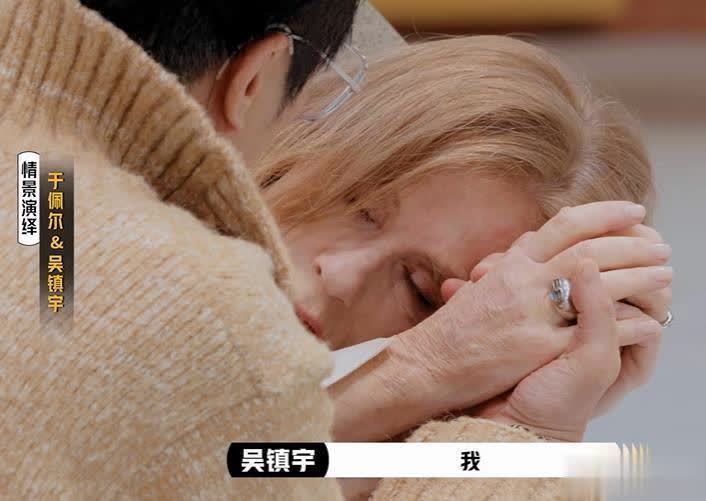 当吴镇宇提出要交换手镯时,于佩尔老师又捂着脸哭了起来,看到岳母这样,吴镇宇再次趴在了岳母的肩上,这一连串的亲昵动作,直接当我懵圈了,因为吴镇宇和于佩尔两人的表演,完全不像是女婿和岳母,更像是一对热恋中的情侣。