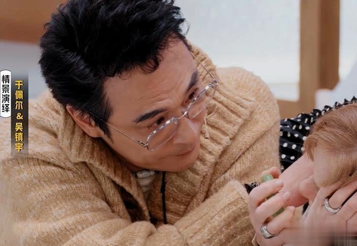 随后于佩尔老师的反应也非常雷人,只见她双手抱着女儿的手镯,而后也不知要干嘛,就这么紧紧的抱着吴镇宇的双手,俩人一起抱着她女儿的镯子,这段表演真的是太尬了。