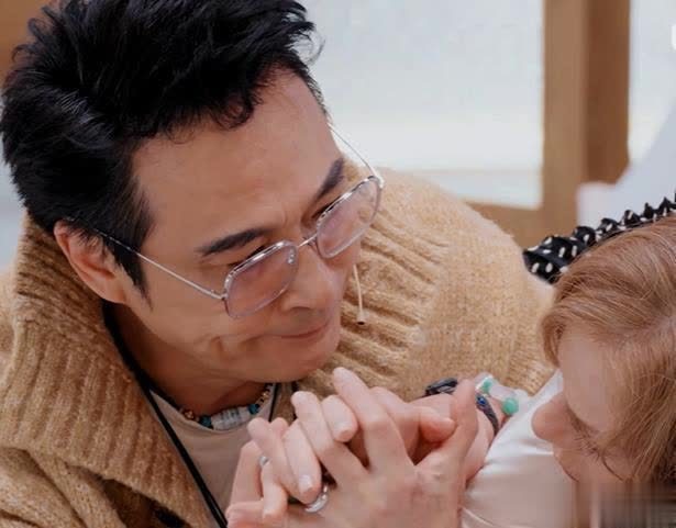 而且这还不算完,下一秒,吴镇宇直接把右手又贴在了岳母的双手,那举动属实太过亲密,按照中国人的传统观念来讲,这种行为像极了情侣,而不像是一对母子。